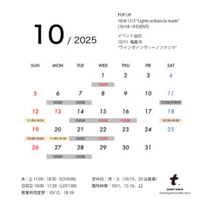 イベント等の関係で変則的なスケジュールが多くなりますが、よろしくお願いいたします。